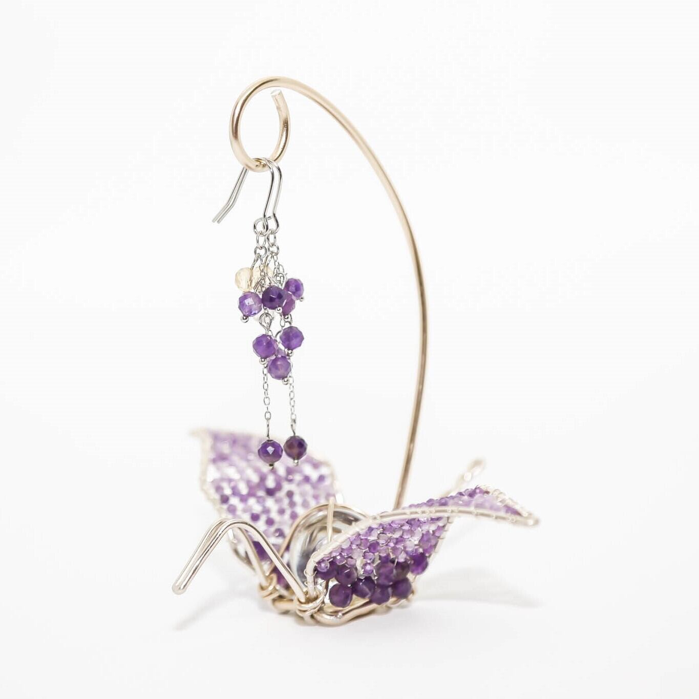 折り鶴スタンド&ピアス/イヤリング【アメジスト】