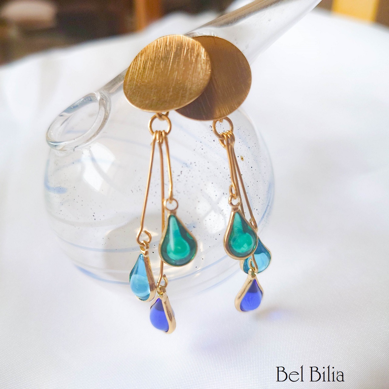 淡いブルー・ライトブルー・ターコイズブルーの雫のピアスです。