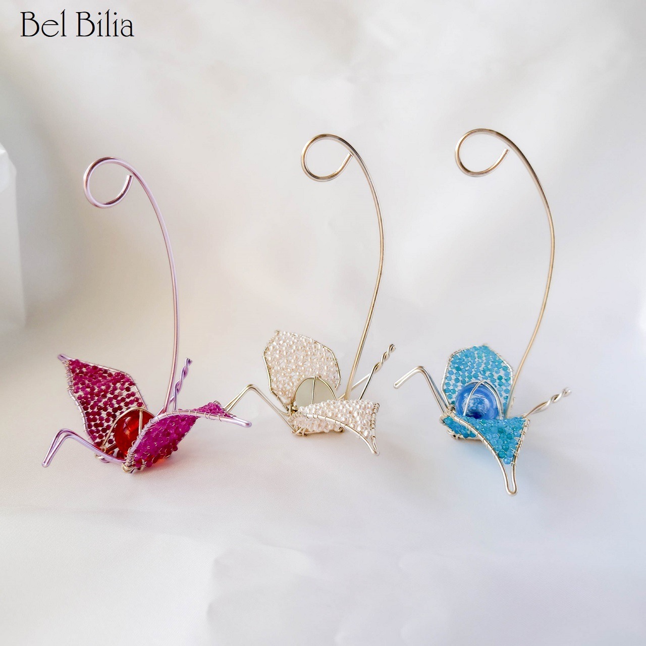 日本の象徴「折り鶴」をモチーフに、ワイヤーと天然石で一羽一羽丁寧に仕上げたオリジナルのアクセサリースタンドです。