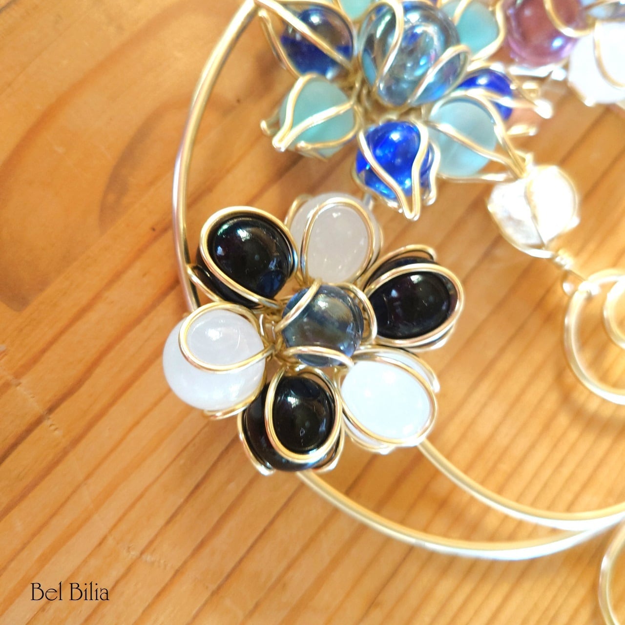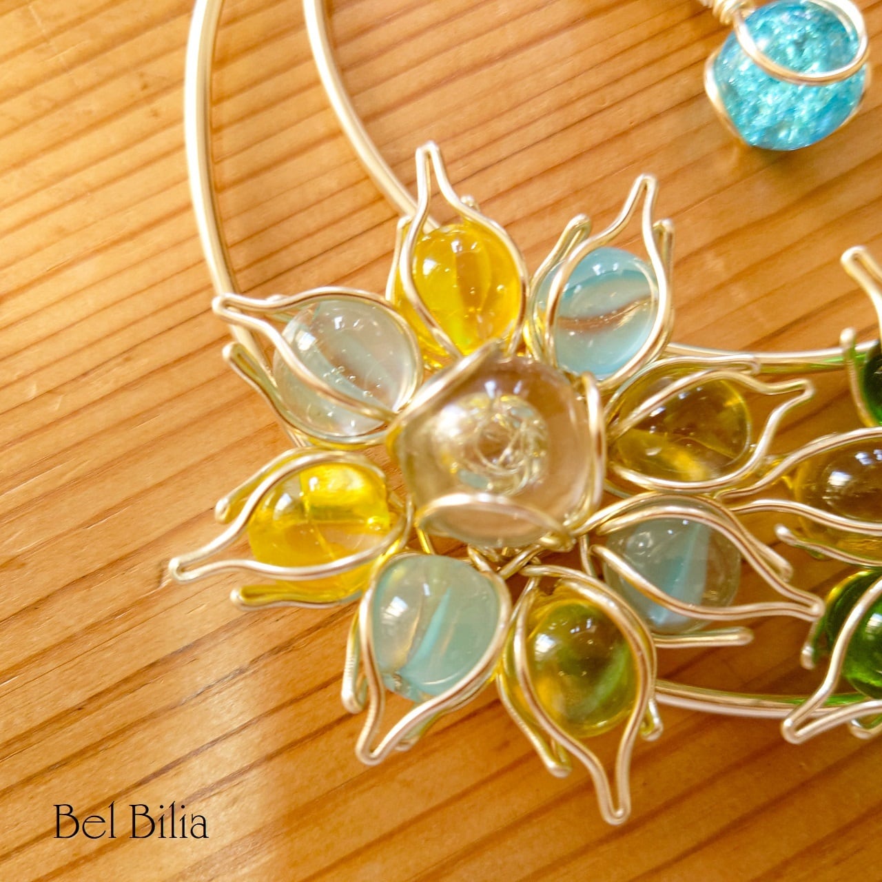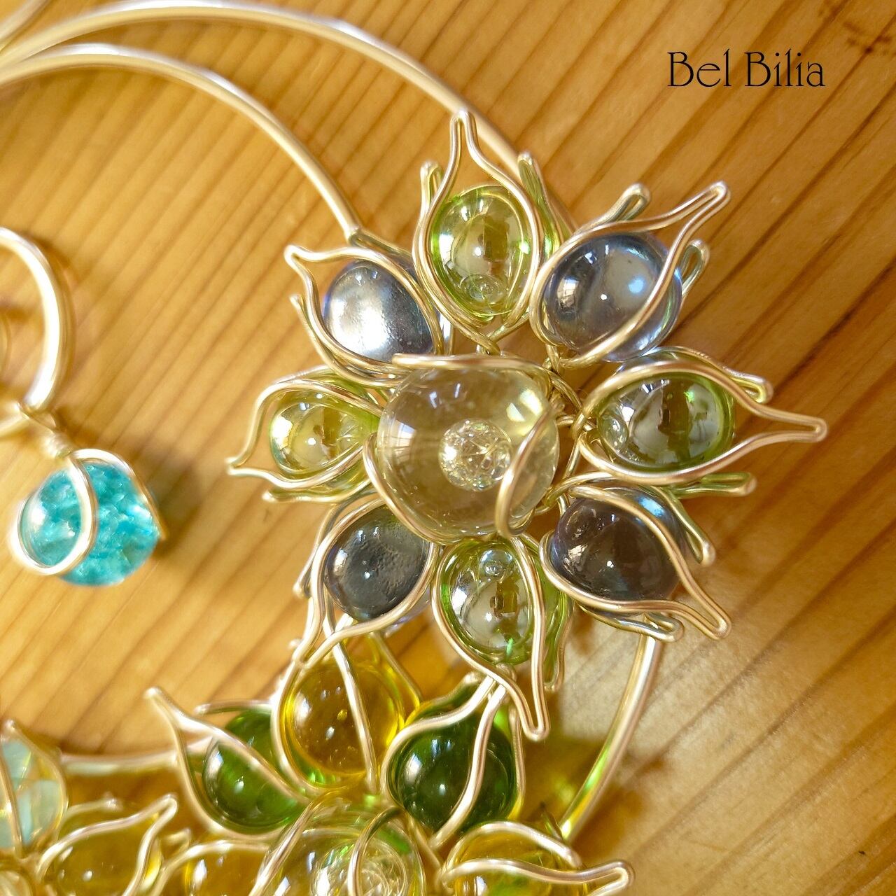 アルミワイヤー、ガラスビーズ、ビー玉