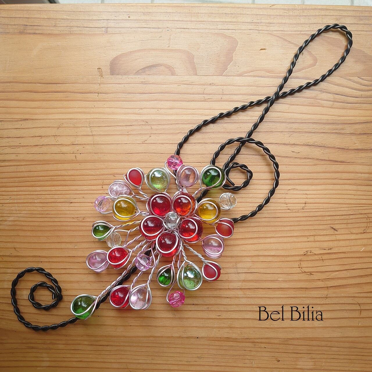 ビー玉とワイヤーのアート・マーブルアートの壁掛け。