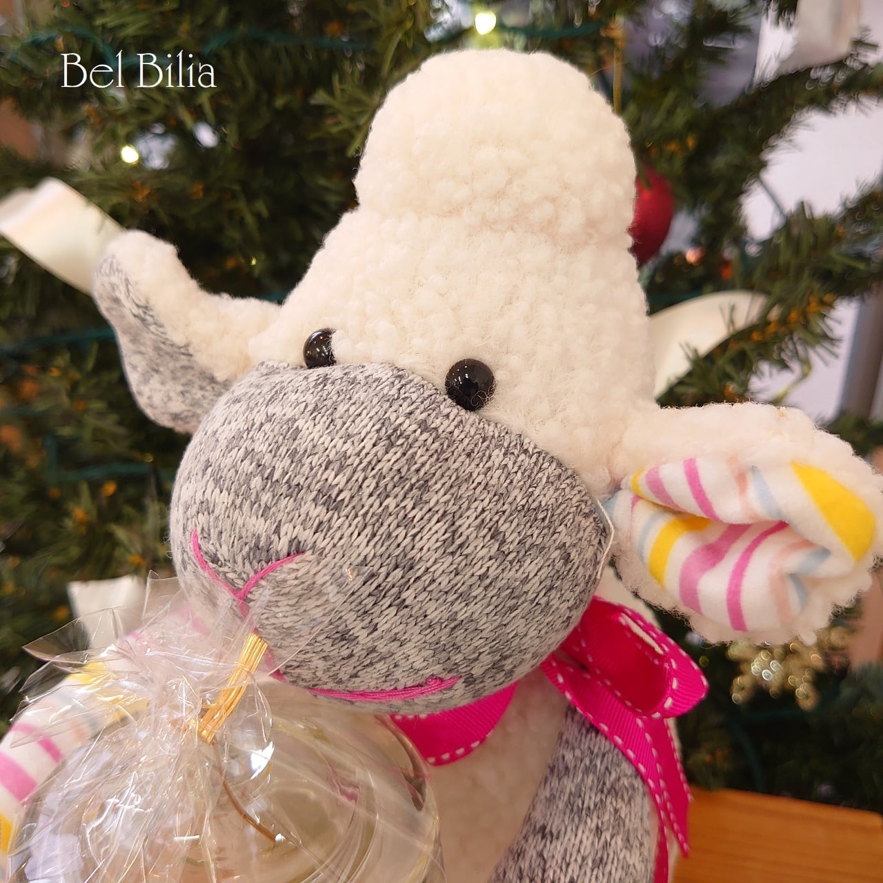ひつじちゃんが抱きかかえているのは、ガラスの瓶に入ったビー玉。
