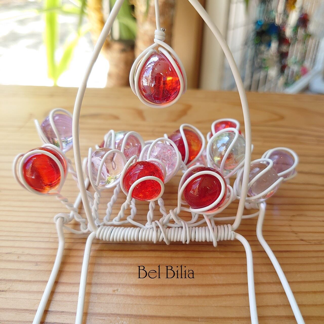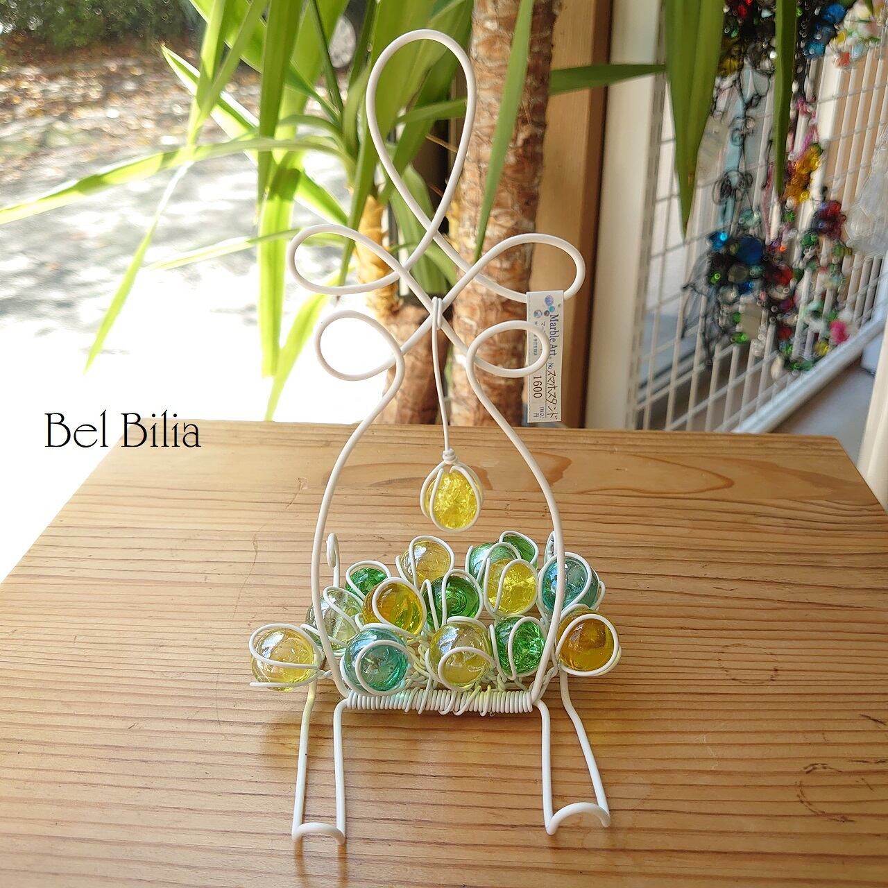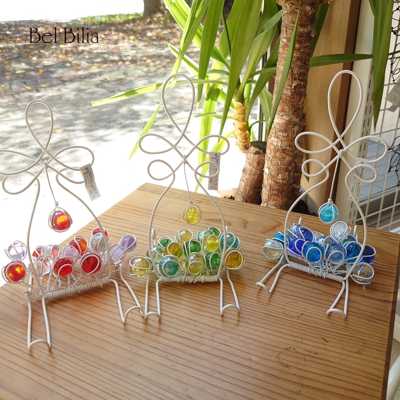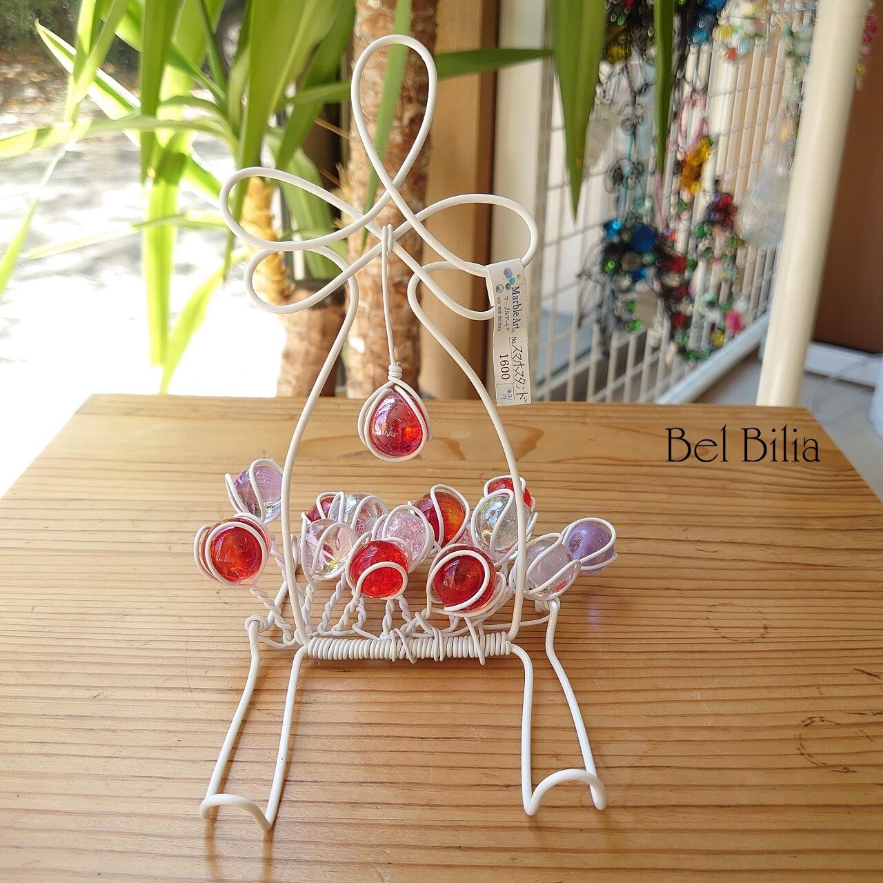 ビー玉とワイヤーで作られた、マーブルアートのスマホスタンド。