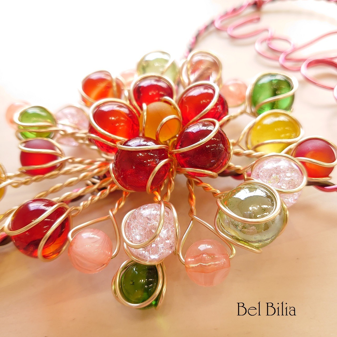 アルミワイヤー、ビー玉、アクリルビーズ