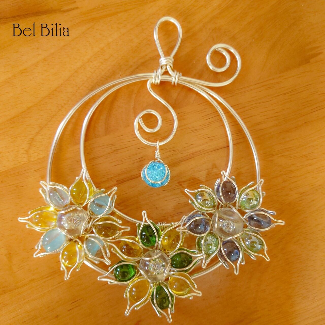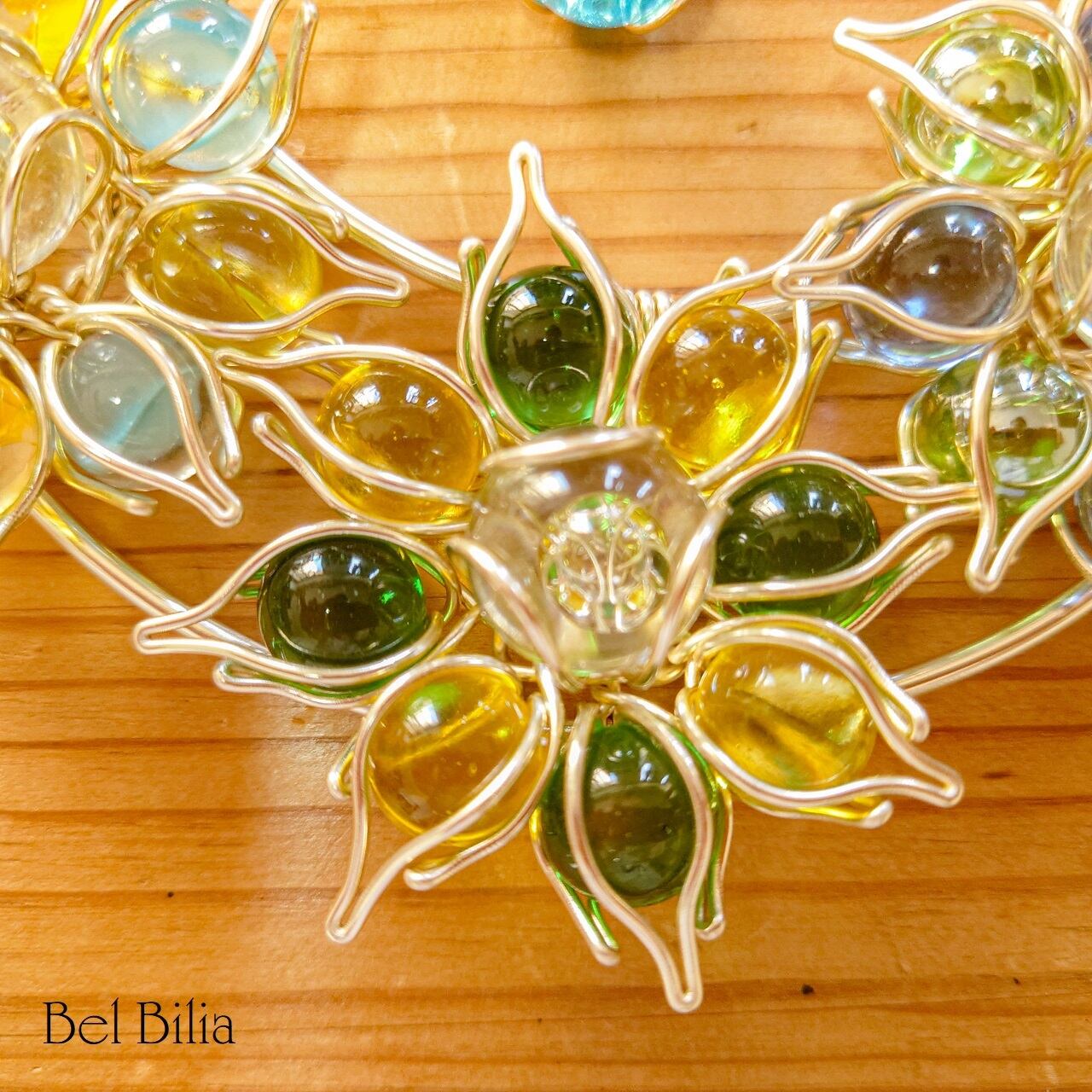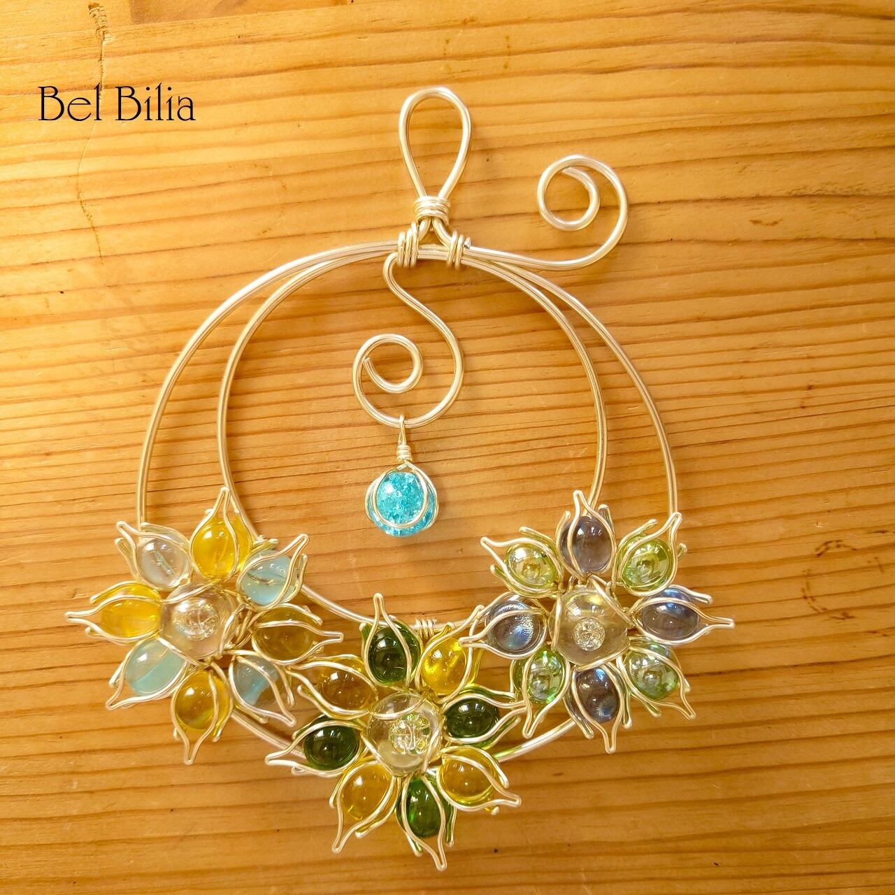 アルミワイヤー、ガラスビーズ、ビー玉